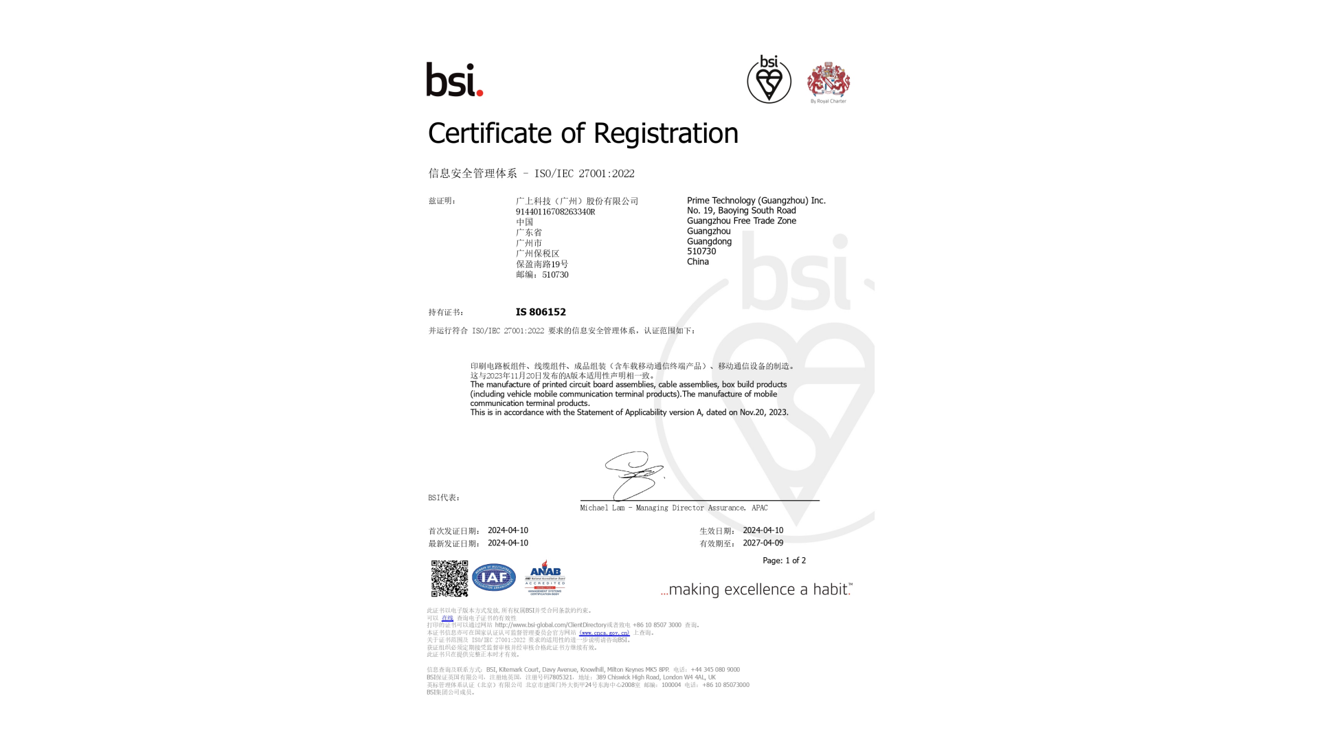 2024年4月10日,mk体育喜获ISO27001信息安全管理体系认证,这一重要认证进一步巩固了mk体育在信息安全领域的地位。